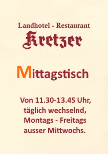 Landhotel-Restaurant Kretzer - Öffnungszeiten Küche: