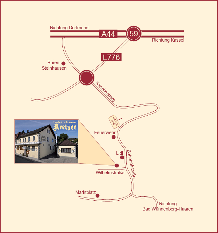 Ihr Landhotel und Restaurant Kretzer liegt in einer ruhigen Straße in der Bürener Kernstadt.