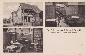 1910 erbaute die Witwe Elisabeth Kretzer das Haus in der Wilhelmstraße. Dieses umfasste neben dem Wohnraum auch Stallungen. Ihr Sohn Ludwig Kretzer betrieb eine kleine Bäckerei in den Räumlichkeiten. Bereits 1912 wurde dem Bäckermeister Ludwig Kretzer eine Konzession zum Ausschank von Kaffee usw. erteilt. Aus einem Umbau zuvor entstanden ein Kaffeezimmer, ein Verkaufsladen und eine Küche. Die Stallungen blieben bis 1960 erhalten. Der Laden sowie das Kaffeezimmer befanden sich in den Räumen des heutigen Restaurants. |